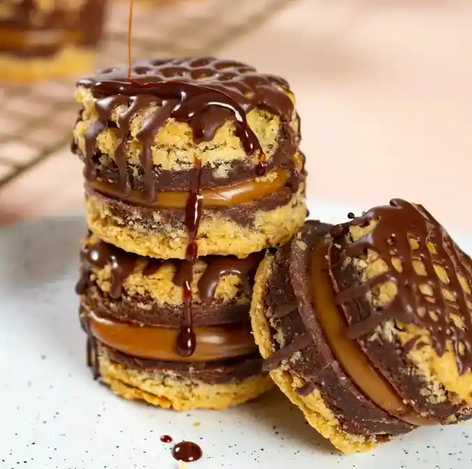 Nuestra gallebrownie convertida en alfajor rellena de mucho arequipe