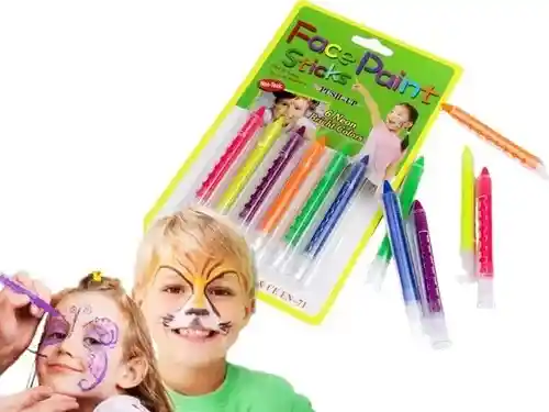 : 🌈 Pintucaritas Barra Neón Colores Surtidos x6 Unidades 💫 Set de pintucaritas en barra con colores neón vibrantes y divertidos, perfectos para fiestas, disfraces, eventos escolares y actividades artísticas. Su formato en barra facilita la aplicación directa sobre la piel sin necesidad de pinceles. ✨ Características: Presentación: Estuche x6 unidades Colores: Neón surtidos (pueden variar según disponibilidad) Textura: Suave y cremosa, fácil de aplicar y remover Uso: Apto para niños y adultos Ideal para: Maquillaje artístico, Halloween, fiestas temáticas y recreativas 🎭 ¡Dale color y brillo a tus celebraciones con estas divertidas pintucaritas neón!