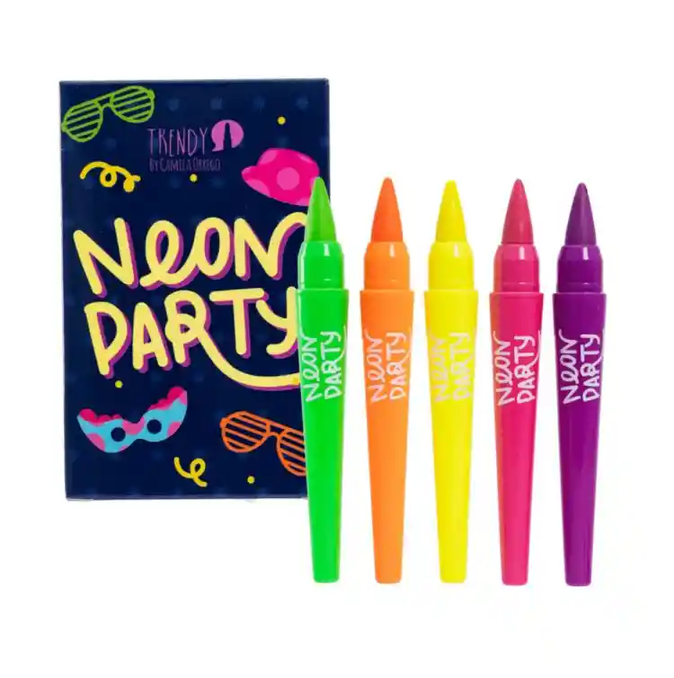 Son crayolas coloridas perfectas para realizar maquillajes festivos y arriesgados. El set incluye 5 colores neón. Están diseñadas para brillar bajo luces negras, creando un efecto fluorescente. Son aptas tanto para adultos como para niños, permitiendo a todos experimentar con colores vibrantes.