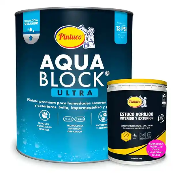 Kit Contiene 2 Unidades. Pintura Aquablock Ultra 1 Und + Estuco 1 Und.