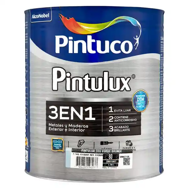 Pintulux Esmalte 3 en 1 Metal Madera Brillante Teu Verde Bronce