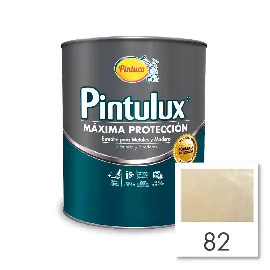 *ENVASADO EN POTE PLASTICO CON ETIQUETA. Pintulux maxima protección es un esmalte alquídico diseñado para interiores y exteriores de excelente adherencia, durabilidad prolongada y máxima resistencia a la intemperie con un alto cubrimiento y buen rendimiento. Gracias a su fórmula brinda una nivelación superior dejando un acabado brillante y uniforme. Disponible en una amplia gama de colores. Producto formulado sin plomo ni cromo. Comentarios de nuestros clientes