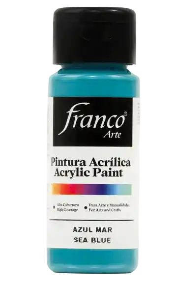PINTURA ACRÍLICA FRANCO ARTE Descubre una pintura versátil, segura y de alto desempeño. La Pintura Acrílica Franco Arte está elaborada con emulsiones acrílicas base agua, ofreciendo una excelente adherencia, cobertura superior y un acabado profesional. Diseñada para creadores exigentes, esta pintura es ideal tanto para proyectos artísticos como decorativos. Multiusos y versátil: Se adhiere fácilmente a una amplia variedad de superficies como madera, MDF, cartón, yeso, cerámica, papel, icopor y paredes interiores. Es perfecta para manualidades, decoración del hogar, restauración de objetos, señalización, lettering, técnicas mixtas, arte country y mucho más. Su fórmula permite aplicarla con pincel, rodillo, espátula o esponja, lo que la convierte en la aliada ideal para artistas, docentes, estudiantes y amantes del DIY. Fórmula no tóxica: segura para todas las edades, sin sacrificar intensidad de color ni resistencia. Rendimiento y precisión: Cubre más con menos. Su textura permite trazos definidos, mezcla de colores uniforme y una aplicación sin complicaciones.