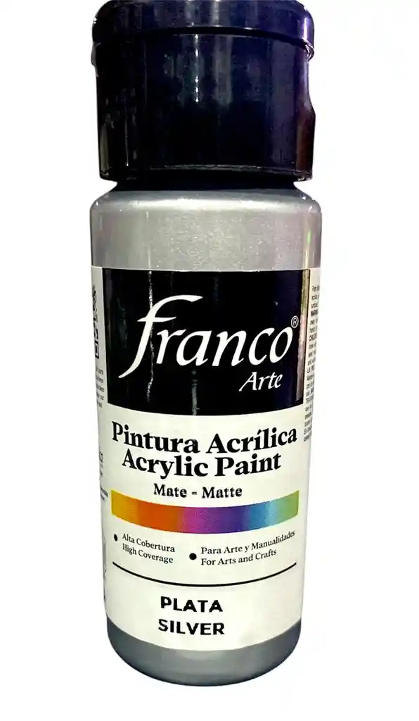 La PINTURA ACRÍLICA FRANCO ARTE es una pintura a base de agua cuyos formadores de película son emulsiones acrílicas. Esta Pintura ecora, protege o señala, materiales como: madera, MDF, yeso, cerámica, cartón, papel, icopor, paredes (interiores), entre otros. Acabado liso, durable, no se decolora, lavable, alto rendimiento, buen cubrimiento, fácil aplicación, excelente adherencia, resistencia a la abrasión, entre otros.