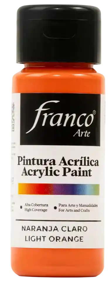 PINTURA ACRÍLICA FRANCO ARTE Descubre una pintura versátil, segura y de alto desempeño. La Pintura Acrílica Franco Arte está elaborada con emulsiones acrílicas base agua, ofreciendo una excelente adherencia, cobertura superior y un acabado profesional. Diseñada para creadores exigentes, esta pintura es ideal tanto para proyectos artísticos como decorativos. Multiusos y versátil: Se adhiere fácilmente a una amplia variedad de superficies como madera, MDF, cartón, yeso, cerámica, papel, icopor y paredes interiores. Es perfecta para manualidades, decoración del hogar, restauración de objetos, señalización, lettering, técnicas mixtas, arte country y mucho más. Su fórmula permite aplicarla con pincel, rodillo, espátula o esponja, lo que la convierte en la aliada ideal para artistas, docentes, estudiantes y amantes del DIY. Fórmula no tóxica: segura para todas las edades, sin sacrificar intensidad de color ni resistencia. Rendimiento y precisión: Cubre más con menos. Su textura permite trazos definidos, mezcla de colores uniforme y una aplicación sin complicaciones.