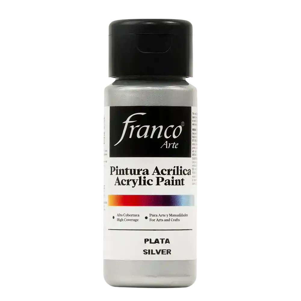 Pintura Acrilica Color Plata 60cc. NO TÓXICA, acabado liso, durable, no se decolora, lavable, alto rendimiento, buen cubrimiento, fácil aplicación, excelente adherencia, resistencia a la abrasión, entre otros.