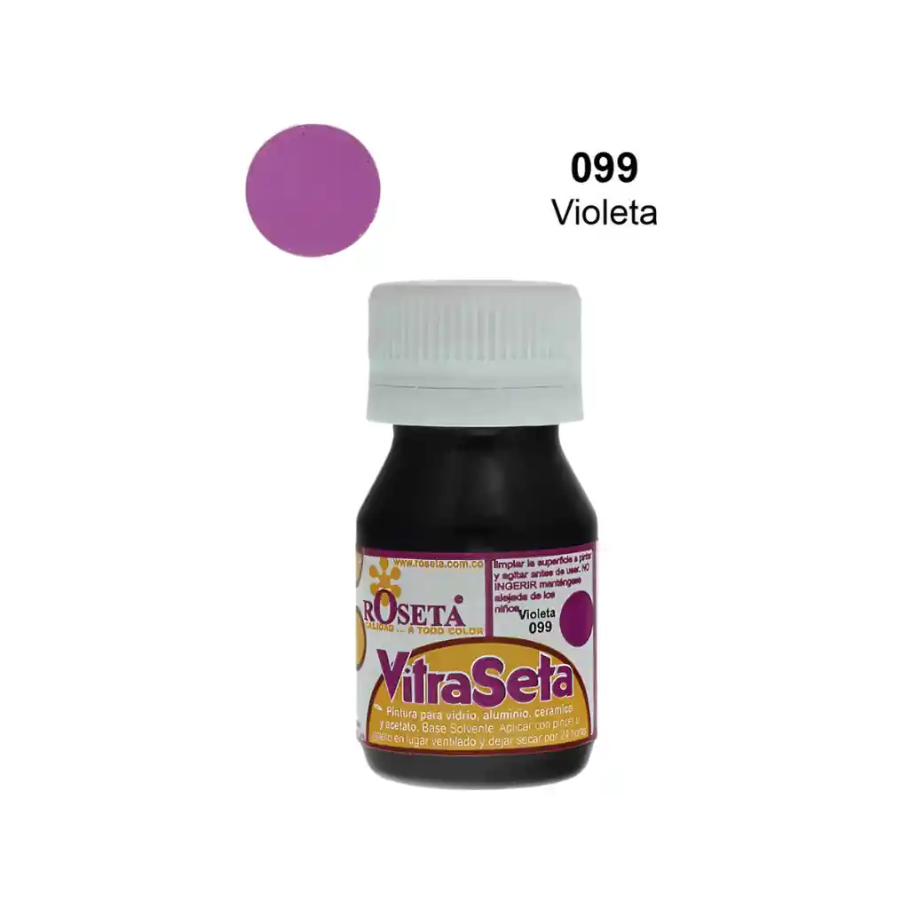 "Pintura transparente para vidrio, acetato, acrílicos, cerámica, madera y aluminio. Color 099 Violeta Antes de aplicar la superficie debe estar libre de grasa, polvo y cualquier partícula extraña. Aplique con pincel, brocha, gotero o aerógrafo. Colores mezclables entre sí para obtener más tonos. Aplicado sobre cerámica o madera da un acabado brillante."
