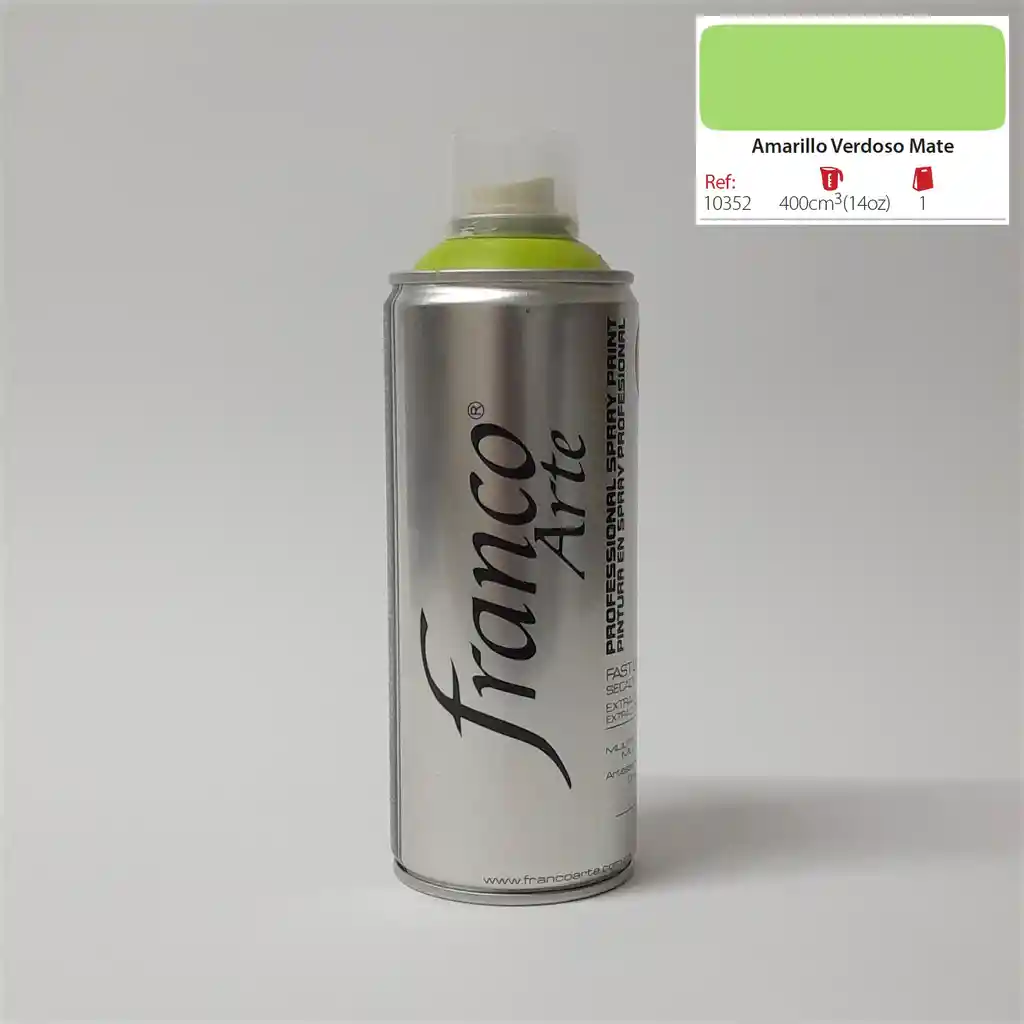 Pintura en aerosol premium Franco Arte de 400cm³ ideal para pintar sobre superficies de metal, madera, ceramica, yeso (mampostería), mimbre, entre otros.