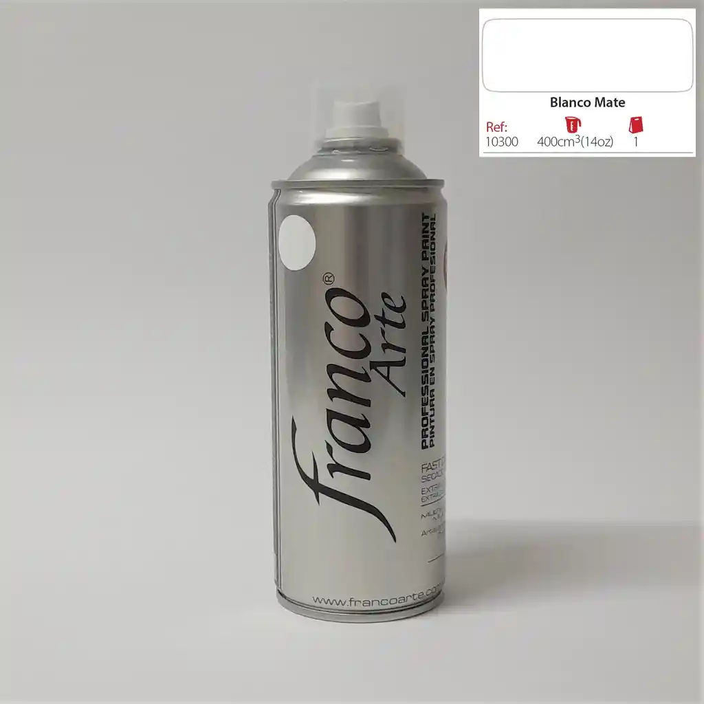 Pintura en aerosol premium Franco Arte de 400cm³ ideal para pintar sobre superficies de metal, madera, ceramica, yeso (mampostería), mimbre, entre otros.