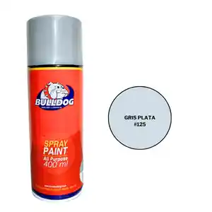 Pintura en aerosol Gris Plata Bulldog 400ml Pintura multiusos con alto cubrimiento, ideal para pintar superficies de metal, madera, cerámica, yeso (mampostería), mimbre, entre otros. Por su alto cubrimiento rinde el doble, con un secado rápido y una adherencia superior.
