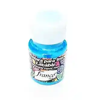 PINTURA PARA TELA FRANCO ARTE ideal para pintar y estampar tela. Súper flexible, buen cubrimiento. No acartona la tela. Es recomendable lavar previamente la tela antes de pintar para eliminar polvo y grasa. Dejar secar por 72 horas y planchar por el revés a temperatura media. Manténgase fuera del alcance de los niños. Agite antes de usar. Contiene: 30 cm3 EAN 7707227483069