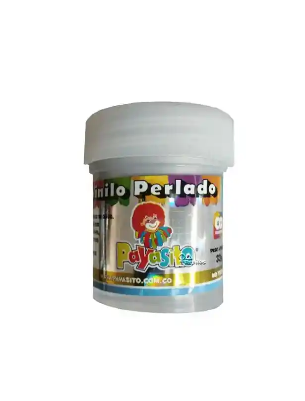 Pintura Vinilo Perlado Plateado 33 Gramos marca Payasito. Pintura a base de agua. No toxica. Para aplicar sobre ceramica, papael, madera, entre otros