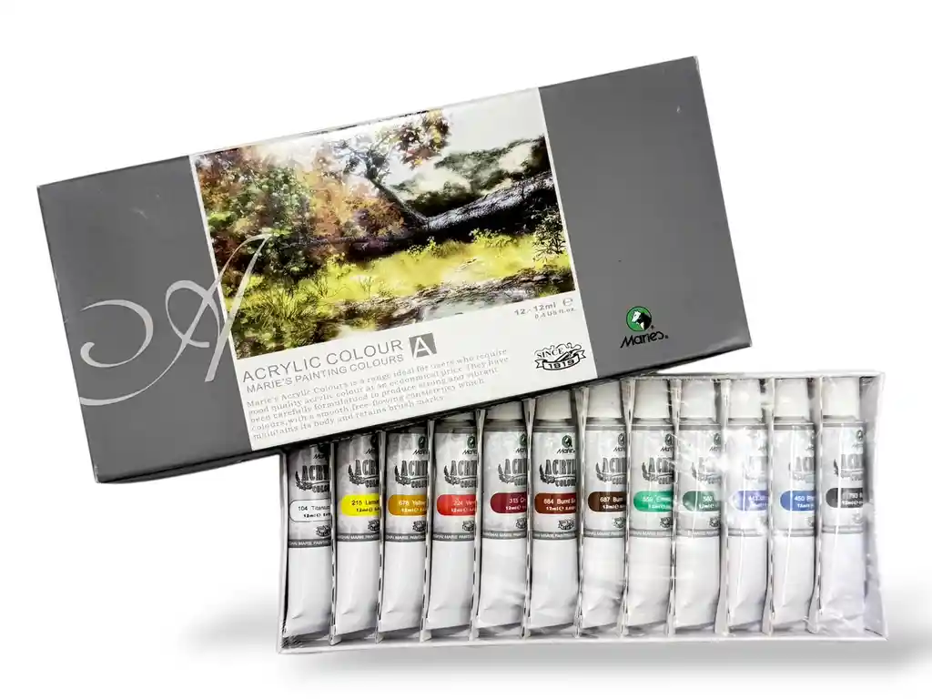 El producto "Acrílicos X 12 Tubos De 12 Ml Maries" es una selección de 12 tubos de acrílico, cada uno con una capacidad de 12 ml. Estos acrílicos son de la marca Maries y están diseñados para satisfacer las necesidades de aquellos usuarios que buscan una buena calidad de color a un precio económico. A continuación, se detallan tres características destacadas de este producto: 1. Colores fuertes y vibrantes: Los acrílicos Maries ofrecen una amplia gama de colores intensos y vibrantes. Estos colores están cuidadosamente formulados para proporcionar un resultado visualmente impactante en tus obras de arte. Ya sea que desees crear obras llamativas y coloridas o pinturas sutiles y realistas, estos acrílicos te ofrecen la posibilidad de lograrlo. 2. Consistencia suave y fluida: La consistencia de estos acrílicos es suave y fluida, lo que facilita su aplicación y mezcla. Al usarlos, disfrutarás de una experiencia de pintura agradable y sin esfuerzo, ya que se deslizan suavemente sobre la superficie del lienzo u otro soporte. Esta característica te permitirá lograr transiciones suaves entre colores y crear efectos interesantes en tus obras. 3. Conservación de las marcas de pincel: Los acrílicos Maries tienen la capacidad de conservar las marcas de pincel en la superficie pintada. Esto significa que podrás crear texturas y efectos interesantes al utilizar diferentes técnicas de pinceladas. Ya sea que prefieras pinceladas sueltas y visibles o una aplicación más precisa, estos acrílicos te permitirán mantener la integridad de tus trazos. Usos: 1. Pintura artística: Estos acrílicos son ideales para su uso en pintura artística en diferentes estilos y técnicas. Puedes utilizarlos para crear pinturas al óleo, paisajes, retratos, abstractos y cualquier otro tipo de obra que desees realizar con colores vivos y de calidad. 2. Manualidades y proyectos creativos: Además de su uso en pintura artística tradicional, estos acrílicos también son adecuados para diversas manualidades y proyectos creativos. Puedes utilizarlos para decorar madera, cartón, cerámica, piedra y otros materiales, permitiéndote explorar tu creatividad en diferentes áreas.