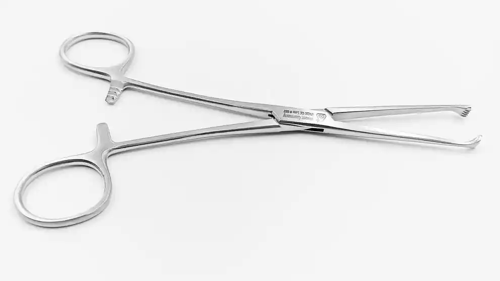 La pinza de Allis es un instrumento quirúrgico con dientes afilados que se utiliza para sujetar tejido grueso, También se utiliza para sujetar la fascia y tejidos blandos, como el tejido del seno o del intestino.