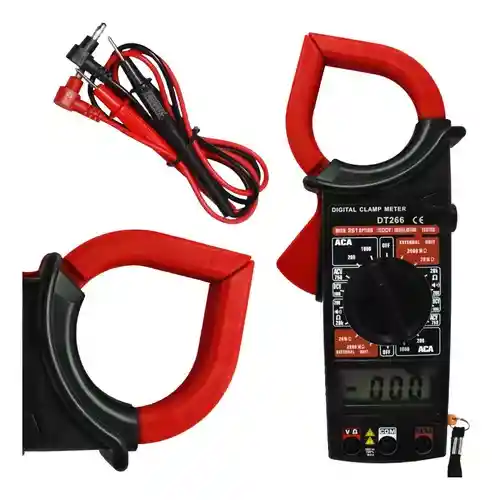 Señal acustica continua - Prueba de Aislamiento - Retencion de Datos - Alimentacion Pila 9V Medidor digital en forma de pinza de 31/2 con funciones estables y seguras, se basa en la integración a gran escala con el alternador A/D de cálculo integral doble como núcleo. También se combinan con un circuito de protección de transbordo. La serie se puede aplicar para medir la corriente alterna, la resistencia aislada, la tensión alterna y continua, la resistencia, las frecuencias, la temperatura, el diodo y el circuito de encendido y apagado. Incluye Estuche y Pila 9v