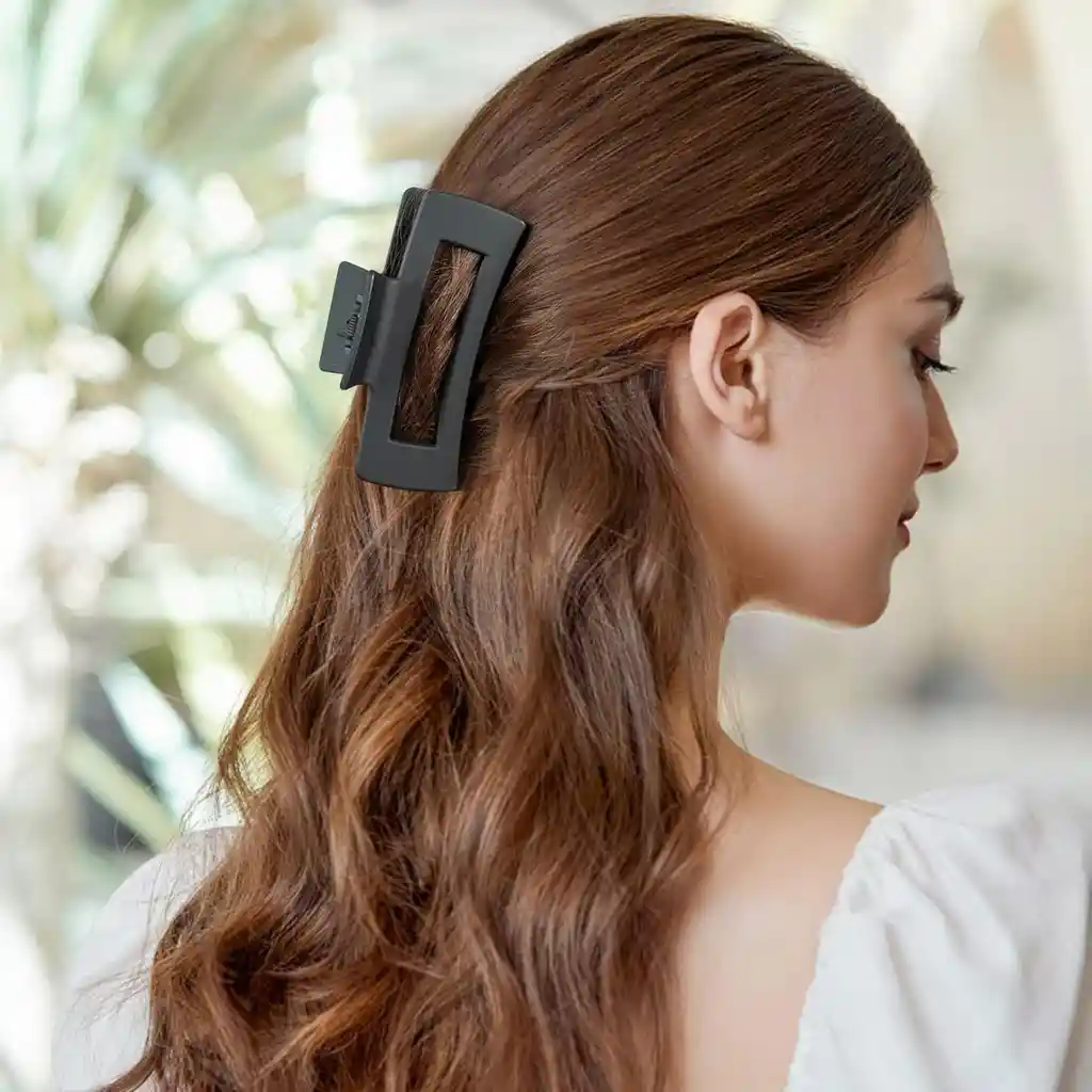 Caimán Pinza Clip Rectangular Mate para Pelo/Cabello Incluye: 1 pinza para el cabello Diseño: Rectangular Color: Negro Tamaño: 8.5 cm x 3 cm - Diseño minimalista y elegante, con acabado mate. - Ideal para mantener el cabello recogido de manera firme y cómoda, sin tirones ni maltratos. - Perfecto para todo tipo de cabellos, desde finos hasta gruesos, este clip combina elegancia y practicidad, convirtiéndolo en un accesorio imprescindible tanto para looks casuales como para ocasiones más formales. - Su diseño proporciona un agarre seguro, ideal para recogidos parciales o completos. *Las imágenes de los productos pueden variar ligeramente en color respecto al producto real debido a la iluminación y las configuraciones de pantalla en diferentes dispositivos.