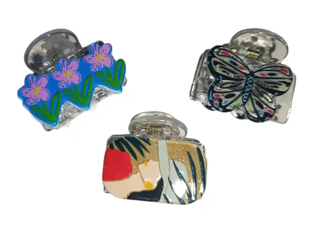 Pinza Caiman Para Cabello Tamaño Mediano Diseño Mariposa, Muñeca o Flores