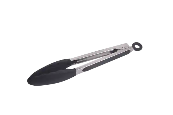 Pinzas de cocina con cabeza y detalles en silicona que hacen el agarre más cómodo, mango en acero inoxidable. La cabeza tiene un diseño de cáscara para recoger los alimentos con facilidad. Cuenta con una percha en el extremo del mango para colgarla.