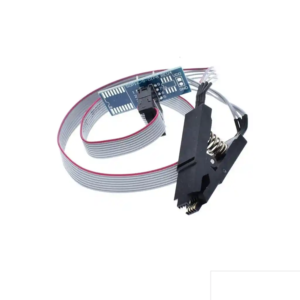Para el chip sop8, tales como 25XX, 24cXX, 93cXX y asi sucesivamente. Puede ser utilizado para la linea en circuito sop8-dip8 adaptador, se utiliza para una programacion de chips sop8 que se ha soldado en la placa de circuito, en linea puede programar el chip sop8, no se necesita extraer el chip de la placa de circuito, por lo que puede ahorrar tiempo de las personas Especificaciones: CLIP de PRUEBA, 8 SOIC/SOP8 tipo de conector: Clip de Prueba formato Pin SOIC/SOP LA COMPRA INCLUYE: 1X PINZA CLIP 1X PLACA ADAPTADORA
