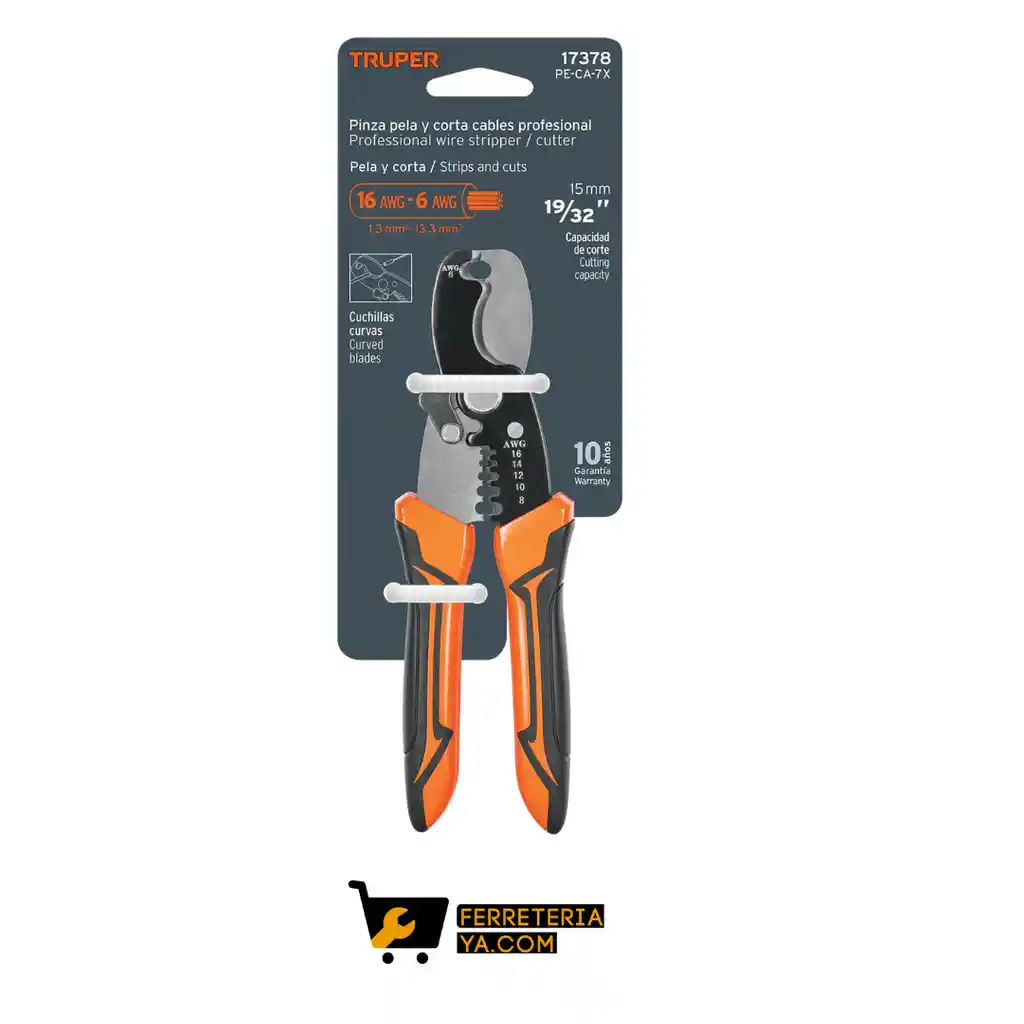 Fabricada en acero con acabado niquelado Mango cubierto de PVC Cuchillas curvas para corte de cable de 15 mm Para pelar cables trenzados calibres de 14 a 8 AWG