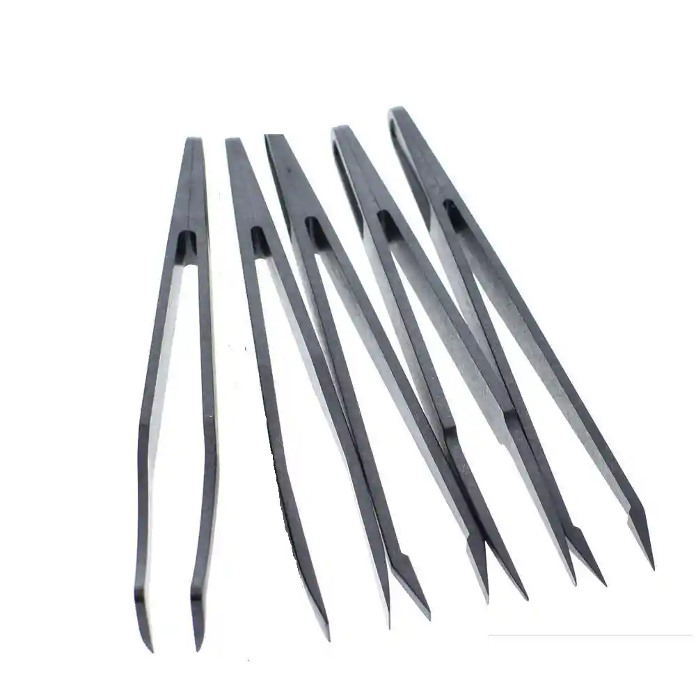 Juego de pinzas electronicas 5 en 1. Hecho de fibra de carbono elastica y plastico. Anti estatico; Antimagnetico. Herramienta de mantenimiento de reparacion de PCB BGA. Cantidad: 5 unids / set De color negro Material: plastico, fibra de carbono Longitud: aproximadamente 4,7 pulgadas / 120 mm Peso total: 1.38 oz / 26 g LA COMPRA INCLUYE: 1X SET 5 PINZAS ANTIESTATICA PLASTICAS FIBRA DE CARBONO