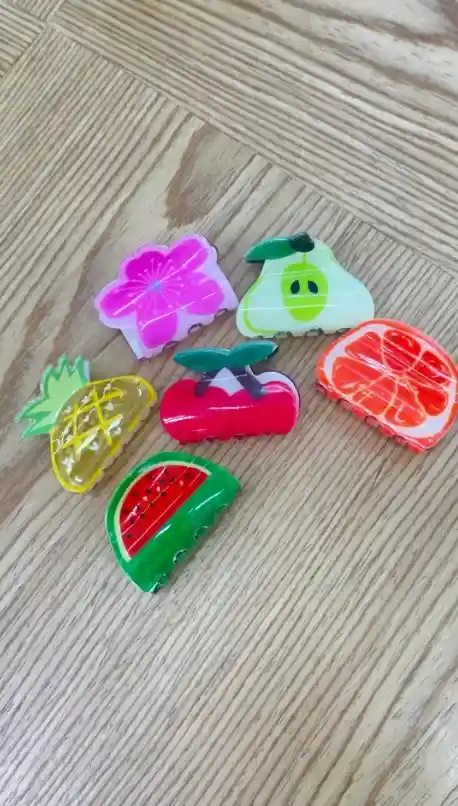🍓🍍 Pinzas Frutas Grandes 🍍🍓 ¡Dale un toque divertido y colorido a tu look! 💖✨ Estas hermosas pinzas grandes con diseño de frutas son perfectas para resaltar tu estilo 🍉🍒 🌸 Diseños llamativos y súper lindos 💁‍♀️ Tamaño grande, ideal para todo tipo de cabello 💖 Sujeción firme y cómoda ✨ Perfectas para uso diario o darle un toque único a tu outfit ¡Luce fresca, alegre y con mucho estilo! 🍓💫🛍️