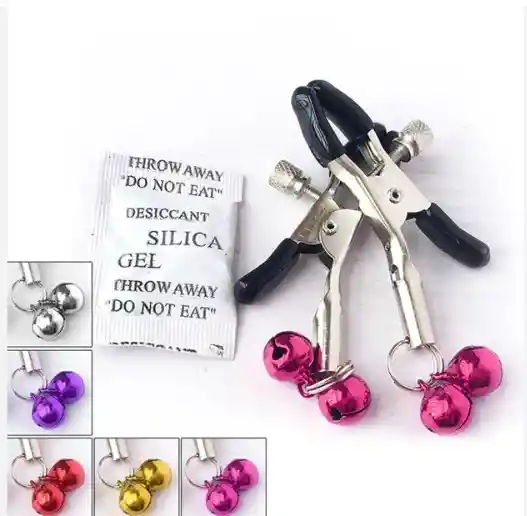 Pinzas pezoneras con cascabel, colores surtida x 2 unidades