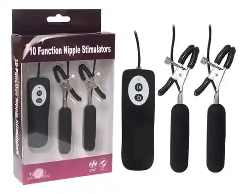 Esta espectacular referencia de pezonera con vibración además de ejercer presión sobre los pezones pellizcando esa zona sensible del cuerpo y logrando un alto nivel de excitación, están provistas de unos pequeños motores de movimiento conectados por cable que vibran y le otorgan a los pezones el protagonismo que merecen. Cuentan con un tornillo regulador que permite ajustar la presión con la que se desea que la Pezonera abrace el cuerpo, y un control de mando a distancia que sirve para controlar la intensidad de los movimientos entre múltiples velocidades de vibración.Tiene 10 modos de vibración y está hecho de un material suave el cual no es tóxico para el cuerpo, entre silicona, acero inoxidable y ABS.