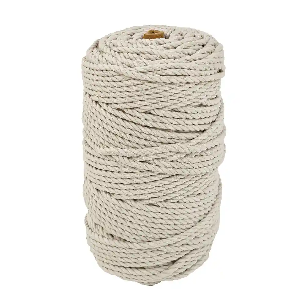 Piola compuesta de 70% Algodón y 30% otras fibras en color crudo con un grosor de 5mm (60 hebras) x 90metros aprox. con un peso de 50 gramos. Resistente y versátil. Ideal para marquillas textiles, trompos y yoyos, plomadas de construcción, amarres en ferretería y manualidades como macramé y cordelería.