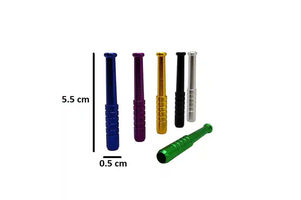 Tipo de Producto: Pipas o boquillas individuales, comúnmente conocidas como "one-hitters" o "chillums". Material: Fabricadas en metal, lo que sugiere durabilidad y facilidad de limpieza. Diseño: Presentan un diseño cilíndrico y compacto, con una forma que facilita el agarre y el uso. Algunas variantes muestran un acabado estriado para mejorar la ergonomía.