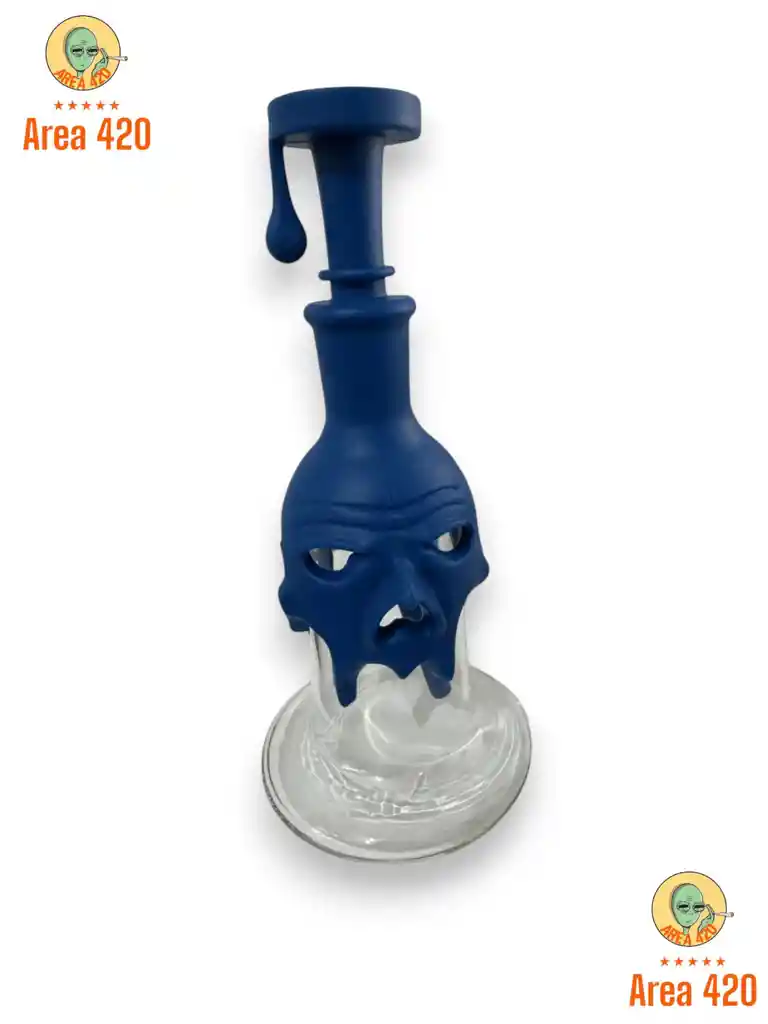 Este bong es un accesorio de vidrio artístico soplado, con diseño curvo estilo “cuello de cisne” y base redonda tipo esfera. Tiene detalles en tonos rojos y dorados que le dan un acabado elegante y llamativo. 🔥