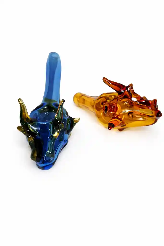 Eleva tu experiencia con esta pipa de vidrio artesanal, diseñada especialmente para extracciones. Fabricada en vidrio grueso y resistente, destaca por su impresionante diseño en forma de dragón, con detalles en relieve que la convierten en una pieza única y llamativa. Disponible en combinaciones de colores intensos como azul con tonos verdes y ámbar dorado, cada pieza es un pequeño objeto de arte. Su tamaño compacto la hace práctica, fácil de transportar y cómoda de usar, sin sacrificar estilo ni funcionalidad.