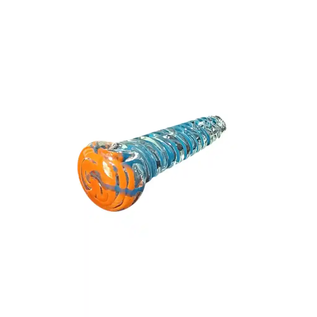 Pipa de vidrio de tamaño mediano con un atractivo diseño en espiral. Ideal para una experiencia de fumar cómoda y elegante. Fácil de usar y transportar.