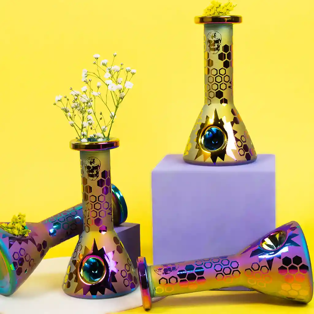 Pieza única de vidrio, con un llamativo acabado metalizado morado tornasolado, tono exclusivo. una Pipa única como vos. Tamaño: 13*6.2CM