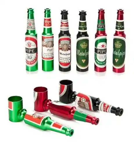 Diseño : la apariencia es un estilo creativo de botella de cerveza. Material : Alto aluminio de Alto calidad es duradero. Forma de Pipa portátil: La forma de tubo grande y portátil Apariencia : diseño Creativo con artesanía fina, diseño íntimo, a A prueba de viento . Este producto puede ser utilizado para productos que contienen nicotina o tabaco. El tabaco y la nicotina son nocivos para la salud. Ley 30 de 1986. Verificar condiciones de uso, indicaciones y contraindicaciones en la etiqueta. Prohibida la venta a menores de edad