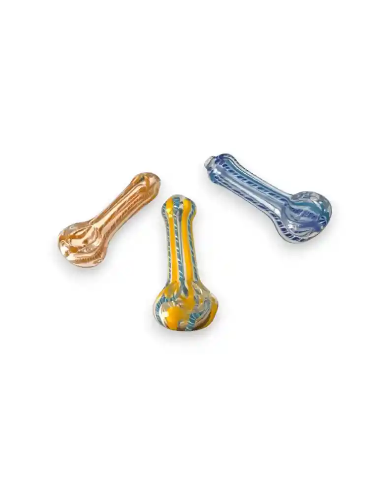 Este bong es un accesorio de vidrio artístico soplado, con diseño curvo estilo “cuello de cisne” y base redonda tipo esfera. Tiene detalles en tonos rojos y dorados que le dan un acabado elegante y llamativo. 🔥