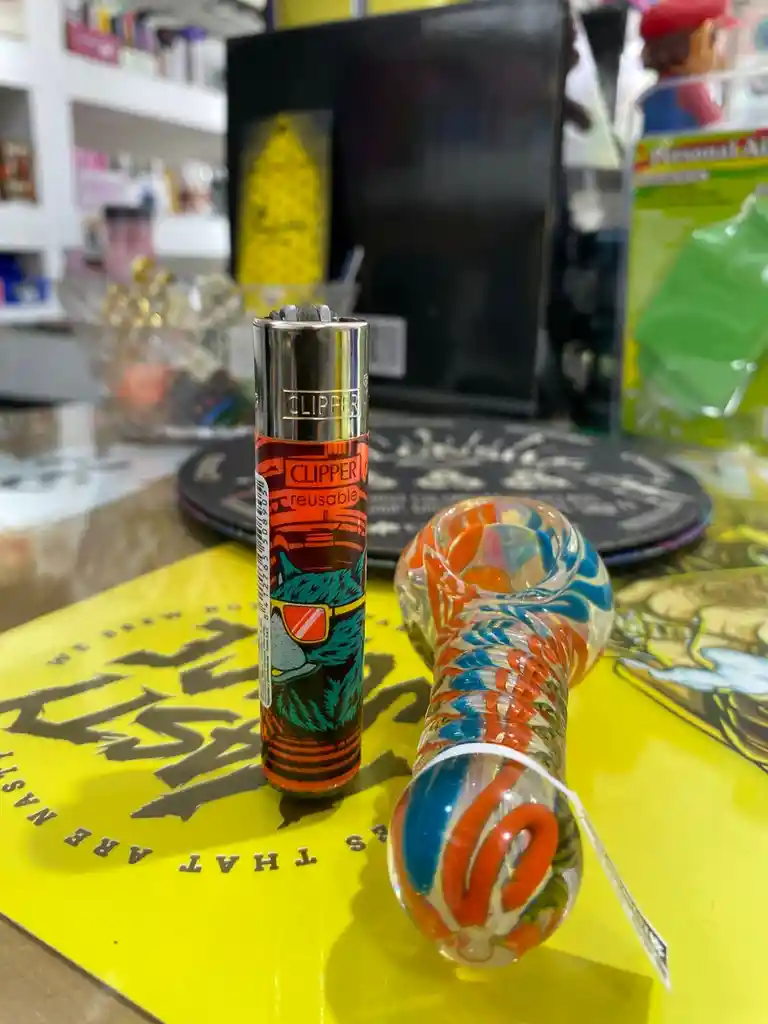 El combo perfecto para tu sesión! 💨✨ Pipa de vidrio + Clipper: estilo, calidad y practicidad en un solo paquete.