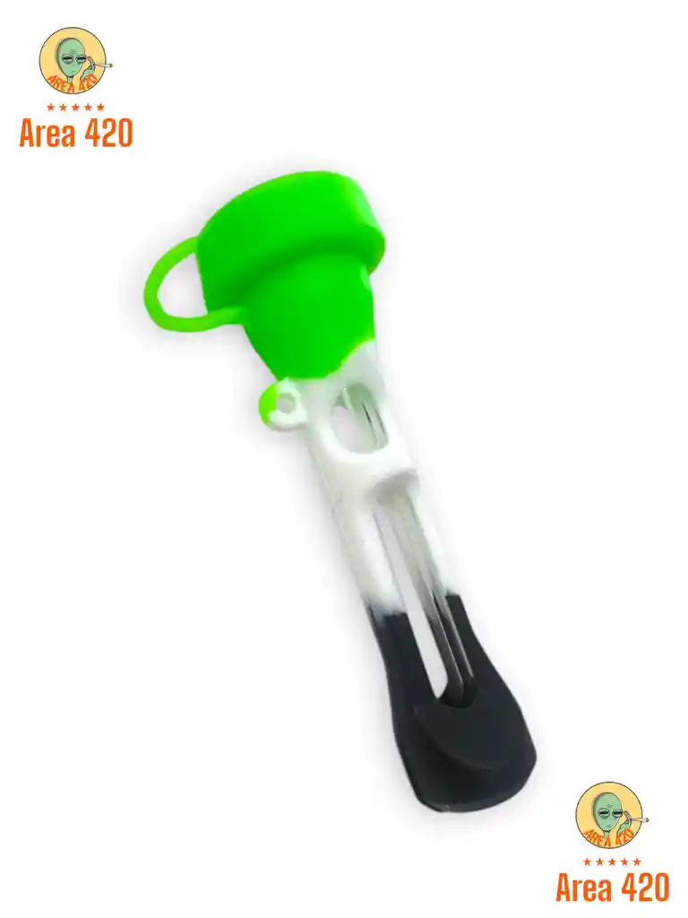 Pipa de diseño colorido con gradiente rojo, amarillo y verde. Compacta, resistente y fácil de usar. Ideal para llevar a cualquier lugar, con tapa protectora para mayor seguridad. ¡Una opción perfecta para tu colección!