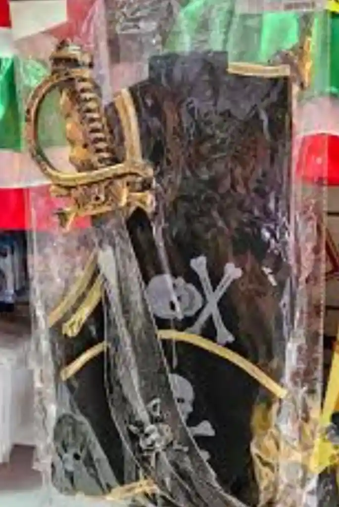 Descripción: Conjunto de accesorios de pirata ideal para disfraces y juegos de rol. Incluye una espada dorada con detalles realistas y un sombrero negro decorado con la clásica calavera de corsario. Perfecto para carnavales, fiestas temáticas, Halloween o aventuras en alta mar llenas de imaginación.