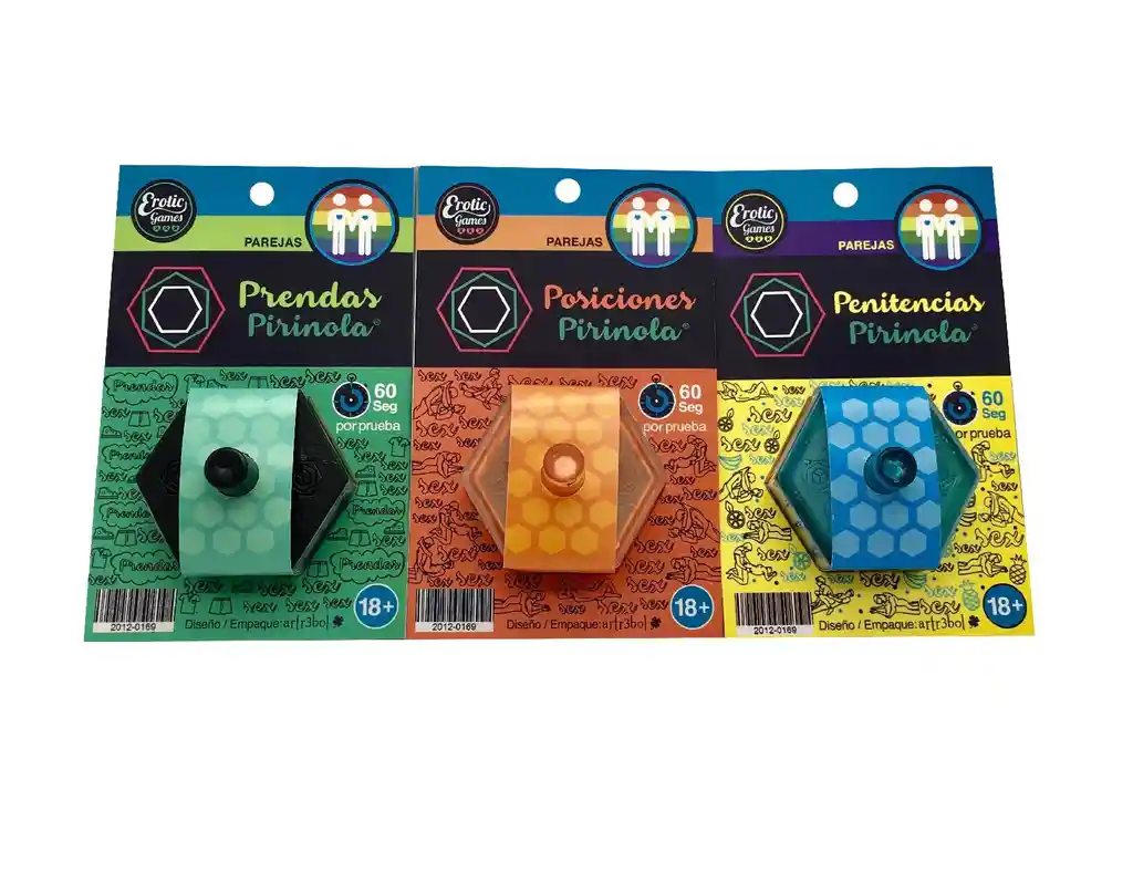 Pirinolas !!!Posiciones. Penitencias y Prendas.Para parejas Heterosexual. gay y lesbianas a elección.Hazla girar y déjate llevar. 3 pirinolas para encender la pasión y diversión con tu pareja.Incluye : Una pirinola a elecciónPosiciones. Prendas y Penitencias.6 lados (Heterosexual - Gais - Lesbianas)