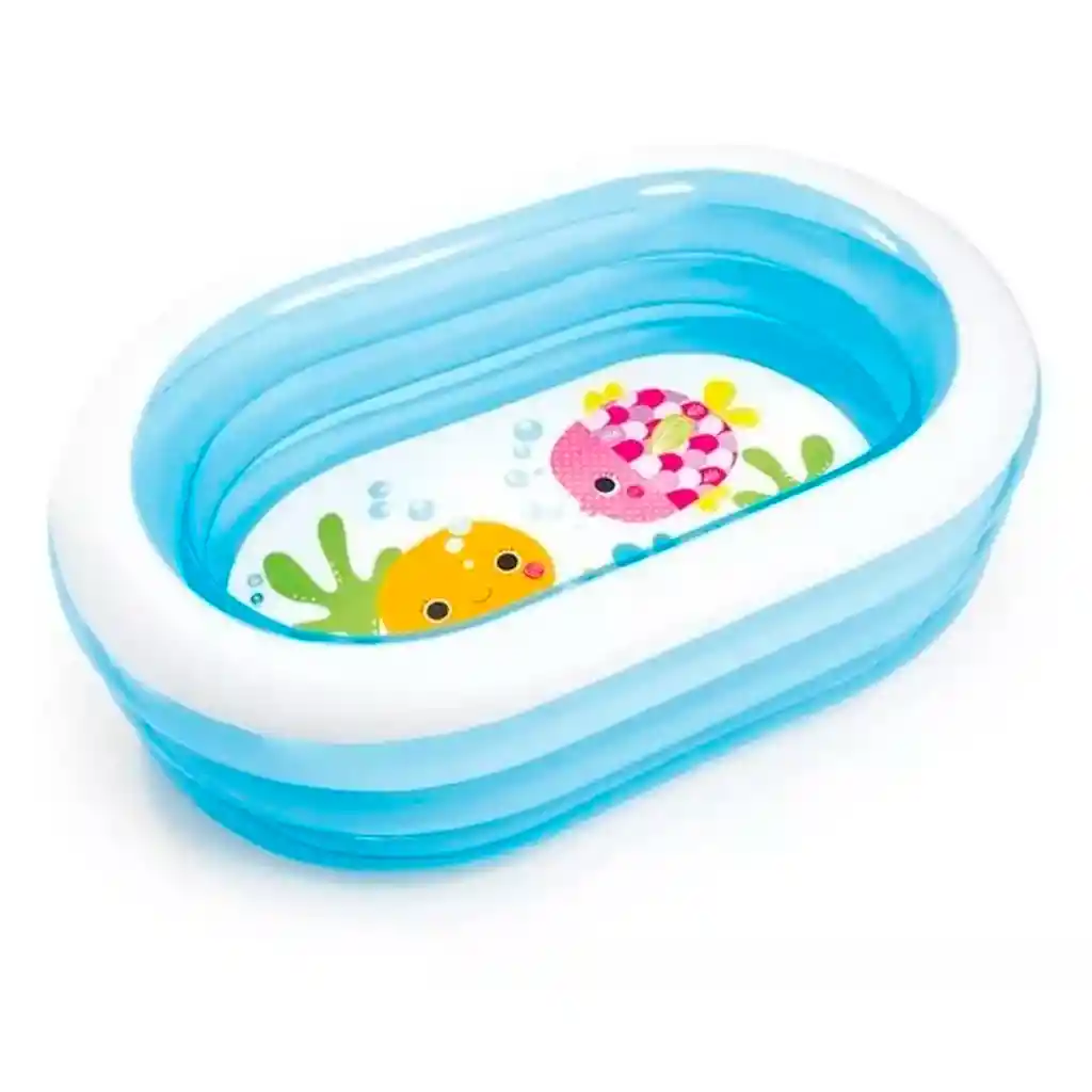 Intex es reconocida mundialmente por fabricar piscinas inflables de gran calidad, y por asegurar comodidad, diversión y seguridad en cada uno de sus productos. ¡Para los más chicos! Su capacidad de 230 litros la convierte en un lugar de diversión apto para niños y niñas de hasta 2 años de edad en el que podrán jugar y disfrutar horas en el agua. -Piscina hinchable Intex de la línea My Sea Friends, las medidas de la piscina circular son 163 x 107 x 46 cm -Fabricada con material vinílico muy resistente y duradero tiene una capacidad para 230 litros de agua -La piscina es de color azul y blanca y en el fondo de la piscina lleva ilustraciones de animales marinos de colores -Dispone de tapón de drenaje para un fácil vaciado, incluye kit de parches para reparar pequeños poros o pinchazos -La piscina está diseñada para un uso de 2 niños a partir de 2 años