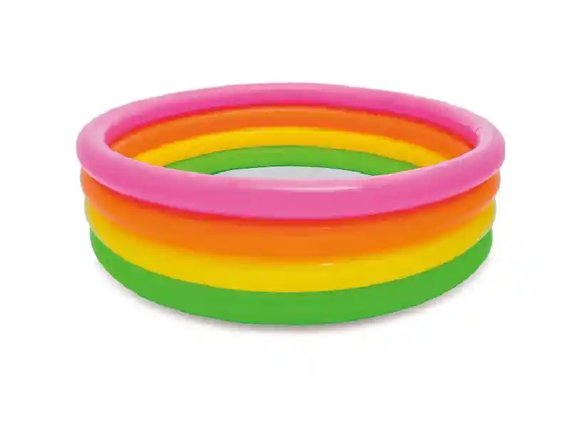 Piscina inflable de gran calidad, comodidad y segura Su capacidad de 666 litros la convierte en un lugar de diversión apto para niños y niñas a partir de 3 años de edad, que podrán jugar, zambullirse y disfrutar horas en el agua. Recuerde supervisar a los usuarios del articulo para evitar accidentes. Medida: 168 x 48 Capacidad de agua: 666 L Material: vinilo de alta resistencia 2 Cámaras de aire para inflado Diseño de arcoíris