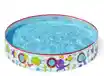Fill 'N Fun con diseño de mundo submarino. Es una piscina de pared rígida que no requiere inflado; se despliega y se mantiene firme a medida que se llena de agua. Especificaciones Principales: Dimensiones: 152 cm de diámetro x 25 cm de altura ( ). Capacidad de agua: Aproximadamente 435 litros (115 galones) al 75% de su capacidad. Edad recomendada: A partir de los 2 o 3 años. Material: Paredes de PVC de alta resistencia y fondo de vinilo resistente. Características Destacadas: Sin inflado: Paredes laterales rígidas fijadas permanentemente al fondo para un montaje rápido. Diseño divertido: Gráficos coloridos de criaturas marinas y ventanillas transparentes integradas para el juego imaginativo. Accesorios: Generalmente incluye un parche de reparación autoadhesivo para pinchazos menores. Seguridad: Recuerde que los niños deben estar bajo supervisión constante de un adulto mientras usan la piscina para prevenir accidentes.