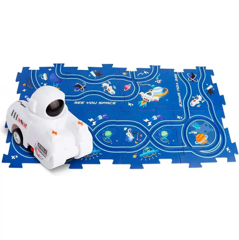 Esta innovadora pista de construcción en forma de puzzle invita a los niños a crear su propia ruta personalizada, estimulando su creatividad desde el principio. Con detalles inspirados en el mundo del espacio, las figuras plasmadas en su superficie aportan realismo y diversión. El sistema vial está diseñado para que el vehículo de astronauta se desplace de manera autónoma sobre la pista, proporcionando horas de entretenimiento mientras los pequeños imaginan y construyen su propio entorno de juego. /// Contenido de la caja: Pista - Carro y Baterías /// Ficha Técnica: Dimensiones del Empaque: 30 cm x 23 cm x 5 cm Dimensiones de la pista: 48 cm x 24 cm Material: Plástico ABS no toxico Edad recomendada + 3 Años Certificado de conformidad: SL-CS-210044 Referencia: C4054 Medidas del Vehículo : 8 cm x 6 cm x4 cm Batería de juguete para coche: 1 * pila AAA (Incluida) Términos de garantía: Para defectos de fábrica o retractos: Por favor revise el producto apenas lo reciba y antes de usarlo. No aplican ley de retracto o defectos de fábrica luego de usar el producto. Se manejan máximo 5 días para reportar defectos de fábrica (por ejemplo, producto funciona mal, piezas faltantes, rotas, etc). Para hacer efectiva la devolución el producto debe devolverse con el empaque original, el cual debe estar en buen estado, incluir todos los documentos y las partes completas y sin daños.
