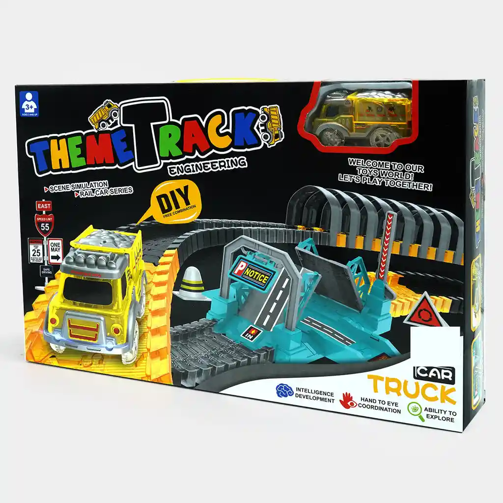 🚗Hermosa Pista con accesorios acompañada de un carro de construccion , siendo un juguete de piezas armables que permitirá a los niños (a) desarrollar su imaginación e intelecto, su memoria para el armado y desarmado de esta figura. 🚗El producto viene en su caja sellada, este producto esta recomendado para niños mayores de 3 años ya que contiene piezas pequeñas. 🚗La caja incluye : un carro de motor, pista, soportes para su armado. 🚗Material : Plástico ABS no tóxico, inodoro e inofensivo Edad Recomendada : 3 Años en adelante. Dimensiones del empaque : 43 cm x 29 cm x 7 cm Material del vehículo : Metal - Plástico ABS no toxico.