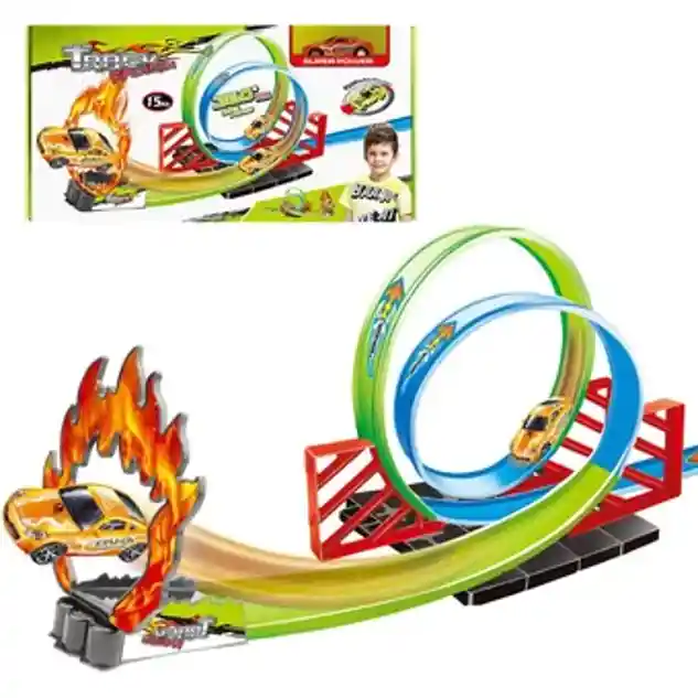 ADVERTENCIA: Este producto puede contener piezas pequeñas, que representen riesgo de asfixia. Se sugiere supervisión de un adulto. 15 PIEZAS PISTA DE CARRO FUEGO HERMOSO