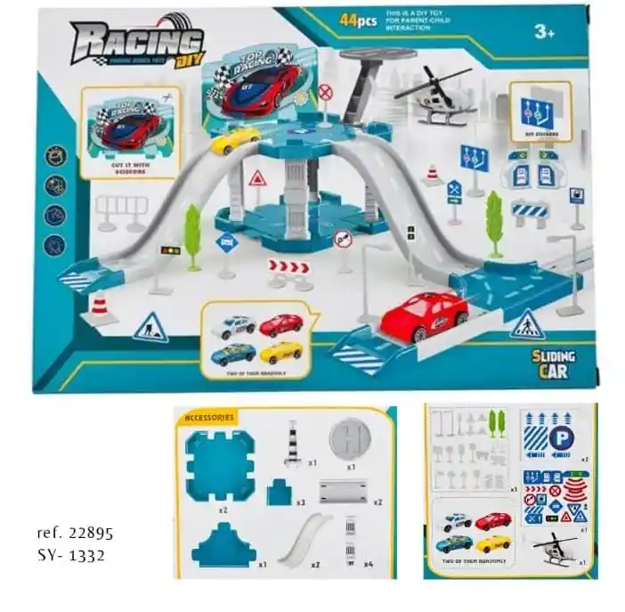 Pista de Carros Racing DIY – Set de 44 Piezas con Rampas, Señales y Helicóptero ¡Diversión sin límites para los pequeños amantes de los autos! Este increíble juego de pista con parqueo y rampas permite armar un circuito completo con múltiples caminos, accesorios y vehículos. Su diseño tipo “hazlo tú mismo” (DIY) fomenta la creatividad, la imaginación y la coordinación mano-ojo. Características principales Set de 44 piezas para armar un circuito con múltiples rampas. Incluye 2 carros deslizantes (modelos enviados aleatoriamente). Contiene un helicóptero con plataforma de aterrizaje. Varias señales de tránsito, conos, semáforos y árboles, perfectos para crear una ciudad en miniatura. Carteleras y stickers DIY para personalizar todo el escenario. Piezas grandes, resistentes y seguras para niños. Ideal para niños desde 3 años. Permite juego individual o en familia, fomentando la interacción. Beneficios del juego Estimula la imaginación y el juego creativo. Favorece el aprendizaje vial con señales y elementos reales. Ayuda al desarrollo motor mediante el armado. Diseñado para largas horas de entretenimiento. Contenido del paquete 44 piezas totales 2 vehículos 1 helicóptero Señales de tránsito, árboles y conos Rampas y base de parqueo Stickers decorativos Instrucciones de armado Edad recomendada: 3 años en adelante