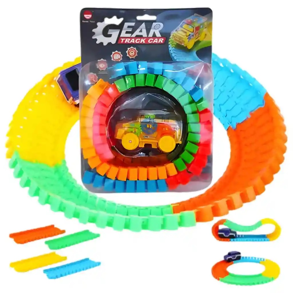 ¡Despierta la imaginación y la creatividad de tu pequeño con el increíble Gear Track Car! Este no es un juego de pistas ordinario; es un universo de diversión en tus manos, con rieles flexibles y multicolores que se pueden doblar, girar y conectar para crear el circuito de carreras de tus sueños. Observa con asombro cómo el vibrante cochecito motorizado se aferra a la pista y la recorre a toda velocidad, superando cualquier curva y pendiente que diseñes. Ideal para fomentar la coordinación y la resolución de problemas, este set garantiza horas de entretenimiento dinámico e imaginativo. ¡Construye, corre y personaliza tu propia aventura sobre ruedas y que la emoción nunca termine! /// El juguete incluye baterías /// Ficha Técnica: Dimensiones del carro: 9 cm x 6 cm x 5 cm Cantidad de piezas : 64 pcs Materiales: Plástico ABS Tipo de Baterías: AAA Edad recomendada: + 3 años Certificado de conformidad: SL-CS-210044 Referencia: 909-582 Términos de Garantía: Para defectos de fábrica o retractos: Por favor revise el producto apenas lo reciba y antes de usarlo. No aplican ley de retracto o defectos de fábrica luego de usar el producto. Se manejan máximo 5 días para reportar defectos de fábrica (por ejemplo, producto funciona mal, piezas faltantes, rotas, etc). Para hacer efectiva la devolución el producto debe devolverse con el empaque original, el cual debe estar en buen estado, incluir todos los documentos y las partes completas y sin daños.