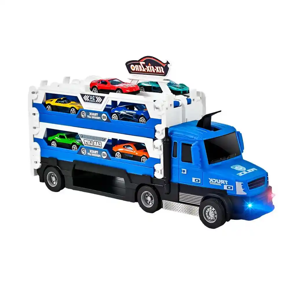 El increíble camión transportador de autos con rampa extensible es el regalo perfecto para las niñas y niños amantes de la velocidad y la diversión, ya que combina un espectacular tráiler de gran tamaño con un conjunto de coloridos carros de carreras que pueden almacenarse y lanzarse desde sus compartimentos; su diseño 2 en 1 permite usarlo como transportador y al mismo tiempo como pista de competencia, ofreciendo horas de juego creativo y emocionante mientras desarrollan la imaginación y la coordinación motora. /// Contenido de la caja: Pista y 2 carros /// Ficha Técnica: Material : Plástico ABS Edad Recomendada : +3 Años Dimensiones de la tracto mula : 34 cm x 18 cm x 9.5 cm Longitud de la pista: 140 cm Material del vehículo: Plástico ABS no toxico. Certificado de conformidad: E5-0359-2021 Referencia: 660-S48 Términos de garantía: Para defectos de fábrica o retractos: Por favor revise el producto apenas lo reciba y antes de usarlo. No aplican ley de retracto o defectos de fábrica luego de usar el producto. Se manejan máximo 5 días para reportar defectos de fábrica (por ejemplo, producto funciona mal, piezas faltantes, rotas, etc). Para hacer efectiva la devolución el producto debe devolverse con el empaque original, el cual debe estar en buen estado, incluir todos los documentos y las partes completas y sin daños.