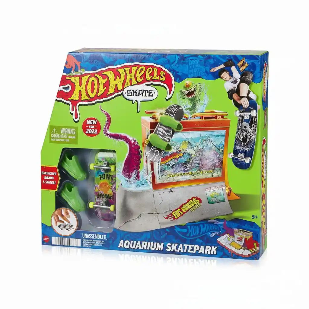 Pista de Juego Skate Acuario Tony Hawk - Hot Wheels™ Incluye: - 1 Hot Wheels™ Skate Aquarium Skatepark - 1 exclusiva patineta para dedos Hot Wheels™ - 1 par de Hot Wheels™ Skate Shoes Marca: Hot Wheels Referencia: HGT91 Edad recomendada: 5+ ¡Pon en acción esas habilidades épicas de fingerboarding en el parque de Hot Wheels™ Skate Acuario! Diseñado para parecerse a un acuario genial con una piraña que se come los dedos, está repleto de rieles, rampas y una gran pecera para realizar increíbles acrobacias como 360 y ollies. Perfecto para coleccionistas, aficionados al skate y fanáticos de Hot Wheels que disfrutan los desafíos y la acción en miniatura. ADVERTENCIA: No conviene para niños menores de 36 meses. Requiere montaje por parte de un adulto.